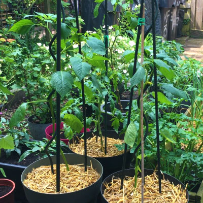 Begin mei, wanneer de kans op vorst voorbij is en de temperatuur rond de 16-17 graden ligt, kun je de tomatillo’s buiten uitplanten. Zorg voor een zonnige plek en ondersteun de planten met spiralen en stokken. Tomatillo’s groeien snel de hoogte in, dus goede ondersteuning is essentieel.